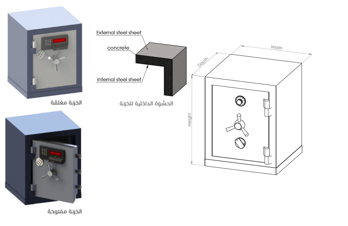 وهي خزنات متوسطة الحجم يمكن استخدامها في المكاتب والمؤسسات والشركات والبيوت. كما يمكن استخدامها في البنوك للمعاملات اليومية وحسب متطلبات الزبون. ويتم تفصيلها بأحجام وألوان وأنظمة اغلاق مختلفة وفقا لمتطلبات الزبون و هي مصنوعة من الحديد والباطون ذو القوة العالية وفقا لأعلى المعايير الأوروبية والامريكية في مقاومة السرقةوالحريق والماء.