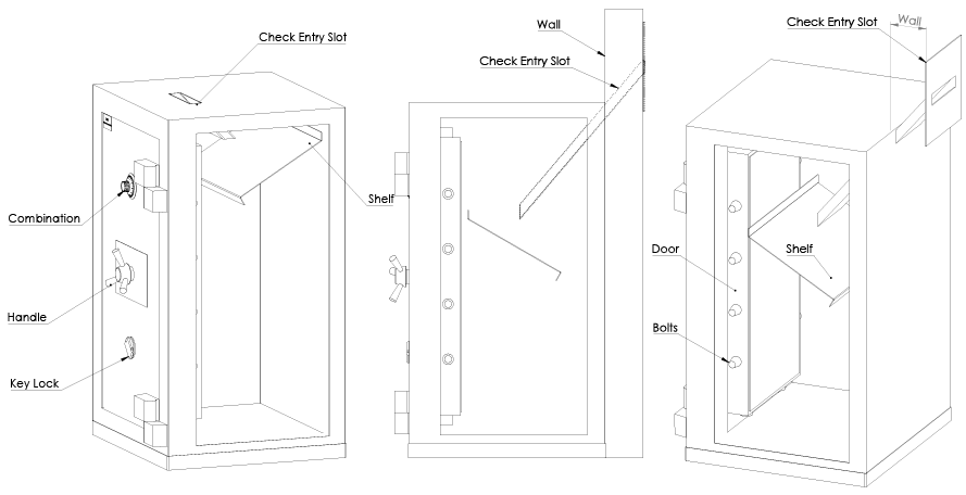 وهي خزنات تحتوي على فتحات للشيكات تصمم في ظهر او أعلى الخزنة وتستعمل بشكل واسع في المنشآت التي تعمل بنظام الورديات مثل محطات الوقود حيث يتمكن موظفو كل وردية من ادخال الكاش او الشيكات دون الحاجة لفتح باب الخزنة.